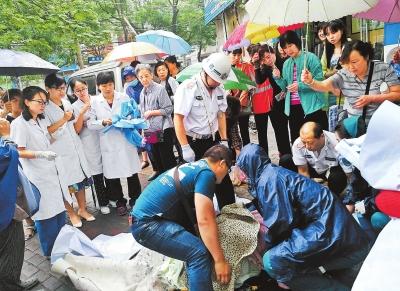 “快!找個(gè)衣服給孩子蓋住?!辈恢l(shuí)喊了一聲。由于下雨天冷,光溜溜的小家伙凍得渾身發(fā)紫。話音剛落,沿街門店的商戶楊女士健步如飛,回到店里把自家孩子的毛毯拿過來,熱心市民有的還把衣服脫掉……毛巾、毛毯、衣服從人縫里送進(jìn)來,一層又一層地裹住嬰兒。當(dāng)120急救車趕到現(xiàn)場(chǎng),眾人把產(chǎn)婦抬上了救護(hù)車,所有人長(zhǎng)長(zhǎng)地出了口氣。